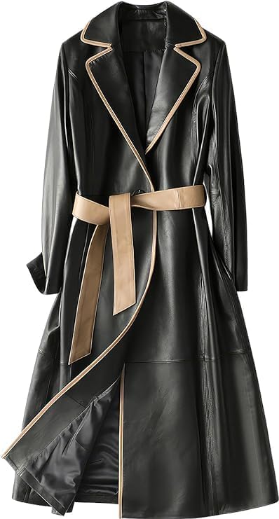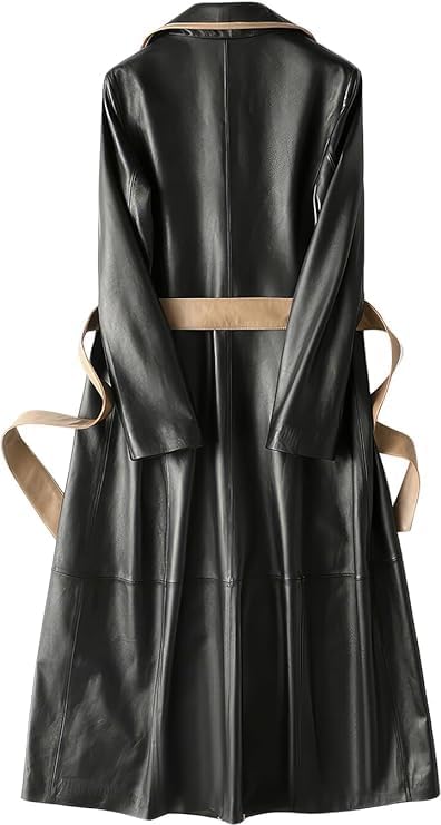 Italian style overcoat Real leather trench sashes Belt Wax Black Long Leather Coat